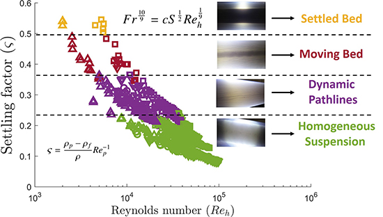 In their approach, the working fluids exhibited characteristics similar to those of nuclear waste slurries, thus relevant test materials for nuclear industries. A flow correlation, based on dimensional analysis, and a non-dimensional settling factor were proposed to describe the flow behavior at different flow conditions. The authors measured the settling regime, flow depth and flow rate of different non-colloidal suspensions in partially-filled conduits. The measurements were carried out over a wide range of Reynolds numbers (Re), pipe slopes (S) and Froude numbers (Fr). A simple framework for the prediction of the sedimentation regime is proposed and validated experimentally.