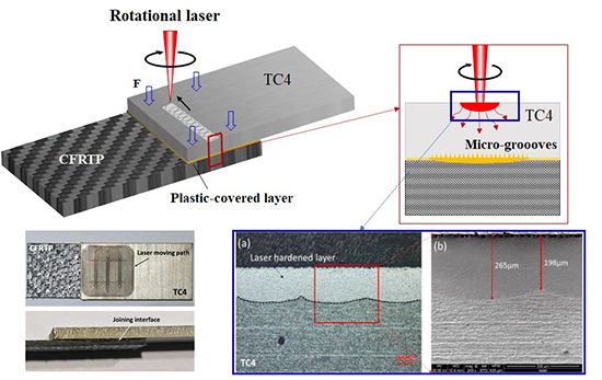 The research team showed that the fatigue resistance and strength of the CFRTP-TC4 joint were significantly improved, resulting in the formation of a 189-265µm thick laser hardened layer on the TC4 surface. This was also attributed to the increased amount of resin at the interface and full combination of the resin and the micro-textures. The joint attained a maximum shear strength of 30.4 MPa higher than that produced through micro-texturing pretreatment. The joint fracture and fracture mode was observed in the CRFTP layers and CRFTP interlaminar tearing, respectively. In addition, the welding area also exhibited a higher average micro-hardness layer compared to the TC4 base metal.