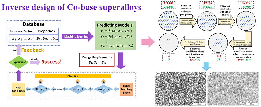 In their approach, predicting models for four key properties: the presence of precipitate, presence of other phases, the area fraction, and γ′ solvus temperature was developed first using multiple machine learning-based algorithms. The accuracy of the models was determined and compared. The best models with the highest accuracy were selected and used to design Co-base superalloys with desirable properties. Finally, the model-predicted superalloys were experimentally validated.