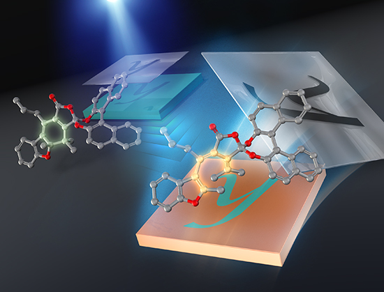 In their approach, a chiral and thermally irreversible photochromic fulgide derivative incorporating an (R)-binaphthol unit in its acid anhydride moiety was used for the photoswitching of the pitch length of cholesteric liquid crystals. By acknowledging the fact that absorption maximum wavelengths of both thermally stable photoisomers were nearly in the UV region (quasi-stealth photochromism), the researchers were able to expose it to visible light without inducing photochromic reactions.
