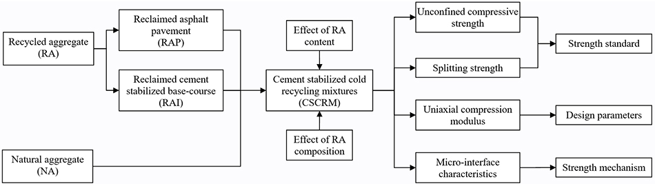 Currently, road milling materials such as reclaimed asphalt pavement and reclaimed cement-stabilized base-course are being widely used as recycle aggregates to prepare cement stabilized cold recycling mixtures used in the rehabilitation and repair of pavements and highways. This can be attributed to the scarce and high cost of natural aggregates and the need to promote sustainable growth by eliminating the environmental problems associated with the disposal of the traditional aggregates. The above road milling materials can be effectively used with the three main road regeneration techniques: hot recycling of asphalt pavement, cold recycling of asphalt pavement, and cold recycling of base-course. Cement stabilized cold recycling mixtures (CSCRM) have, however, attracted significant attention owing to their low cost and good mechanical properties desirable for road construction. Nevertheless, the best engineering performance of CSCRM is yet to be realized because of the limited study on the effect of recycled aggregate composition on its mechanical properties.