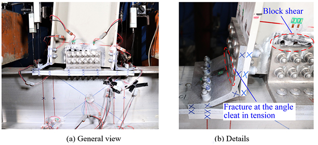 The authors observed several failure modes. They included the block shear failure at the collar pull-out of the swage-locking pin and beam end and fracture at the angle cleats and web-to-flange junction of the beam. All studied specimens exhibited good ductility and hysteresis response characterized by pinching effect and stiffness degradation. Specifically, specimen TSWAC-S2-C recorded the best seismic performance regarding energy dissipating capacity, rotation and moment resistance. The seismic performance of the joint could be improved further by using stronger swage-locking pins and stainless-steel angle cleats and increasing the slip factor.