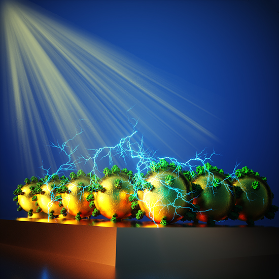 The research team showed that the resulting PSII-AuNP conjugate system achieved a higher photocurrent of 35mA cm-2 mg-1 chlorophyll when used in a PEC cell, which was about six times higher than that of unconjugated PSII. The enhanced photocurrent was mainly attributed to the dual role of the AuNPs in simultaneously improving the harvesting and transfer of light energy to PSII and improving direct electron injection into the graphite anode. This combination was facilitated by the cysteamine-DCBQ ligand shell, and it produced the highest anodic photocurrent ever to be reported for isolated PSII. Furthermore, spectroscopic studies confirmed the strong functional relationship of the hybrid particles.