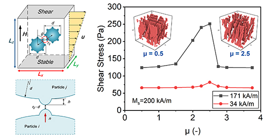 Different simulations have been performed to explore the mechanism of magnetic fluids and determine MR effects. Among them, particle-level dynamic simulations have been widely used to study the rheological behaviors of dynamic fluid under different conditions. However, this simulation method does not consider the interparticle friction force in steady shear and is therefore unsuitable for evaluating complex particle interactions. On this account, researchers at the University of Science and Technology of China: Dr. Lei Pei, Professor Shouhu Xuan, Dr. Haoming Pang and Professor Xinglong Gong, performed particle-level dynamic simulations to investigate the effect of interparticle friction on the MR effect for magnetic fluids. Their work is currently published in the journal, Smart Materials and Structures.