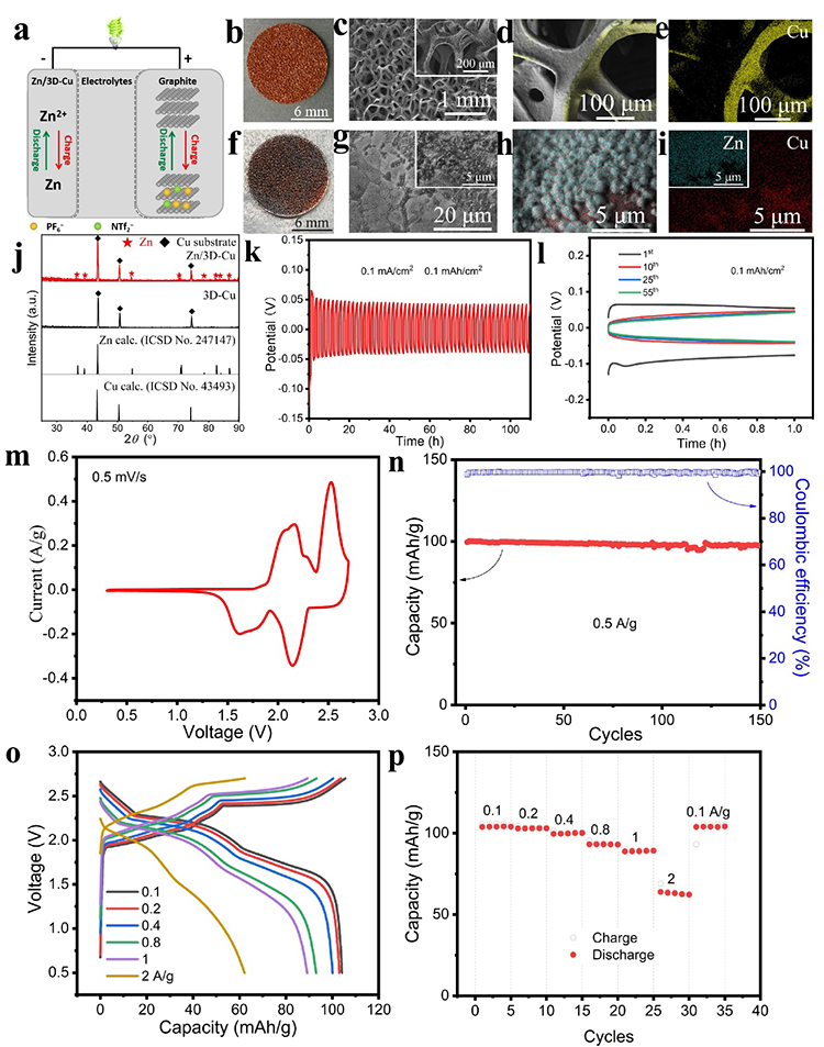 The research team showed that the IL was relatively stable under the selected conditions enabled by the [Hbet][NTf2]. The temperature and potential conditions exhibited a remarkable influence on the morphology of the electrodeposited metal. For the IL solutions consisting of dissolved PbO, ZnO and MgO, the deposition of metallic Pb and Zn under potentiostatic control was achieved by either co-electrodeposition or constructive step-electrodeposition fashion. Furthermore, Zn was successfully deposited on 3D copper foam and subsequently assembled into high-voltage ZGB. The resulting ZGB exhibited a working voltage up to 2.7V, an output midpoint discharge voltage of 2.16V, improved rate and cycling performance and 98.6% increase in capacity retention after 150 cycles.