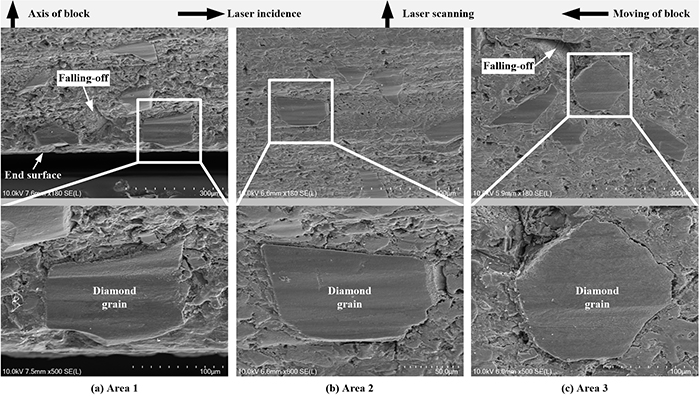 The authors reported that the grains in the middle area of the surface of the grinding wheel were only slightly graphitized, and the damage degree of the grains in the edge area was more serious. Subsequently, a new method of laser sharpening based on layered scanning was proposed, which effectively reduced the difficulty of controlling the laser scanning trajectory, and achieved the uniform removal of the bond and the precise control of the grain protrusion height everywhere on the surface of the grinding wheel. In addition, it was found that the laser beam did not damage the diamond grains during the sharpening process.