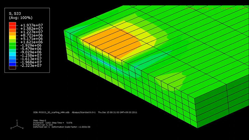 In their approach, the fracture shape of the slab was confirmed using 2000 MPa hot press forming steel. The research team evaluated the phase transformation, impact toughness and fracture toughness of six different steel alloys. Each toughness was measured by altering the chemical composition of the slab. In addition, the scarfing slabs and subsequent scarfing process were simulated to determine the alloying element facilitating crack formation and growth.