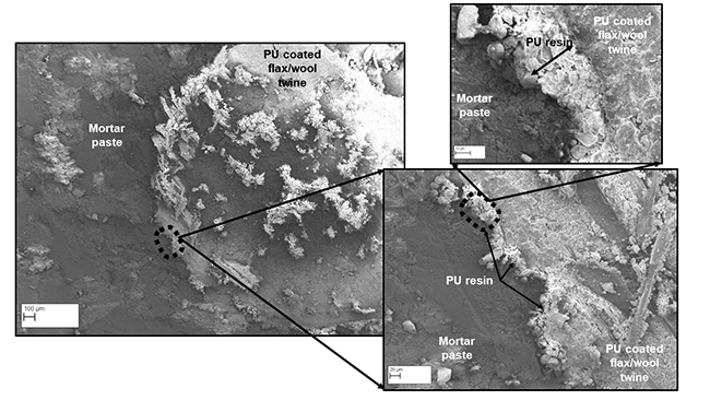 In their approach, cementitious matrices consisting of pulverized fly-ash, ground granulated blast furnace slag and ordinary Portland cement in various ratios were tested with the addition of flax/wool twine (1% volume ratio). The mechanical properties of these samples were assessed at 7 and 28 days. The researchers used epoxy and polyurethane resin to coat the flax/wool twine prior to their inclusion in various cementitious pastes.