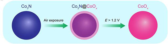 Lately, however, more forgiving alkaline fuel cells have gained prominence, raising the possibility that less expensive metals, once ruled out for their vulnerability to acidic environments, might replace platinum in these gentler, next-generation fuel cells. The research team set out to engineer an inexpensive material, fit for an alkaline fuel cell, that would conduct electricity and catalyze the ORR reaction just as efficiently as platinum. Transition metal nitrides (TMNs) were an obvious choice. A class of compounds derived from cobalt, manganese, iron and other transition metals, TMNs conduct electricity and, when exposed to air, tend to form a thin oxygen-based outer shell that provides a perfect surface for catalyzing chemical reactions. After synthesizing a family of TMNs with conductive nitride cores and reactive oxide shells, the team tested each candidate catalyst in a model hydrogen fuel cell.