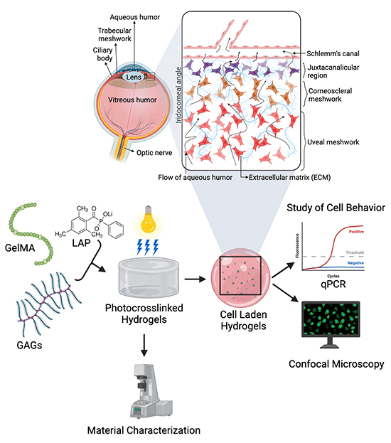 Herein, a team of researchers from Colorado School of Mines: Mr. Bikram Adhikari, Mr. Benjamin Stinson, Dr. Matthew Osmond and Professor Melissa Krebs in collaboration with Dr. Mina Pantcheva from the University of Colorado School of Medicine fabricated a 3D hydrogel-based scaffold model to examine the effects of extracellular environment on TM cells in a biomimetic 3D hydrogel microenvironment. The work is currently published in the journal, Industrial & Engineering Chemistry Research.