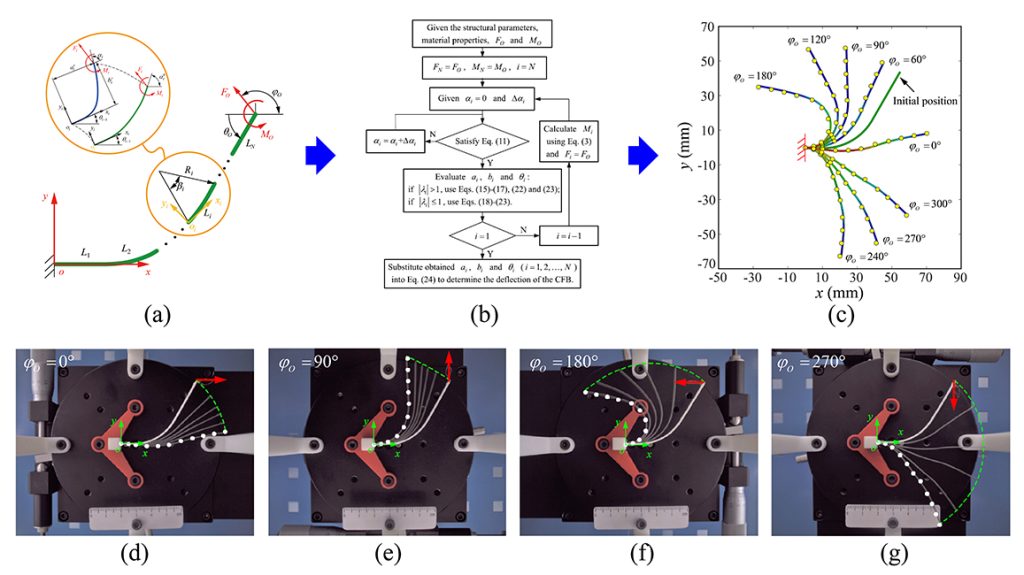 In their approach, the research team proposed modeling approach entailed either circular or straight-arc segments. The large static deflections of CFB subjected to combined loads were obtained through a systematic derivation of the bending moments. The feasibility and accuracy of the proposed model were verified through a numeric comparison with the finite element analysis. The deflections of the fabricated CFB were experimentally tested, and the results were discussed.