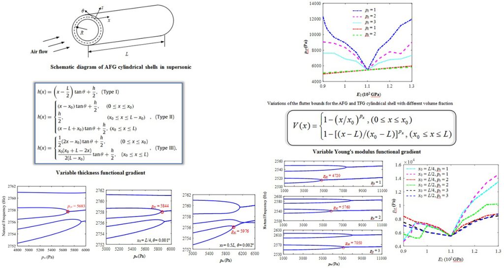 In their approach, an axially functionally graded cylindrical shell was designed, and its aeroelastic behaviors studied in supersonic airflow. The thickness of the cylindrical shell was described based on the analysis of three different functions, while two groups of functions were considered for the material properties. Moreover, the effects of the functional parameters on the occurrence of the panel flutter were evaluated. Eventually, the feasibility of the approach was validated by comparing the flutter stability of the AFG cylindrical shell with that of the conventional transversely functionally graded shell.