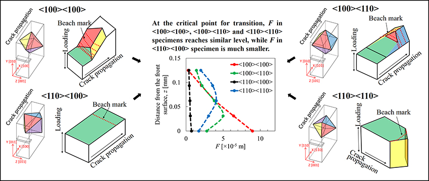 In their approach, fatigue crack propagation test at 450 °C and crystal plasticity analysis were conducted for a Ni-base single crystal superalloy. In addition, crystal plasticity finite element analysis for Mode I cracking, transition, and the crystallographic cracking were all conducted to investigate the slip activity of an octahedral slip system in front of the crack tip by carefully considering the actual 3D geometry of the crack tip.