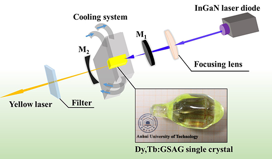 Yellow lasers with wavelength coverage range between 570 and 590 nm have received tremendous interest in recent years owing to their vast applications in medicine, visible laser displays, sodium laser beacons, temperature/wind laser LIDARs, and more. Non-linear frequency conversion methods are the basis for the realization of laser generation in this wavelength. Unfortunately, nonlinear frequency conversion techniques are often complicated, inefficient, and costly. This is why a simpler and reliable yellow laser generation system using laser diode pumping rare-earth doped laser materials to directly realize yellow lasers has been fashioned.