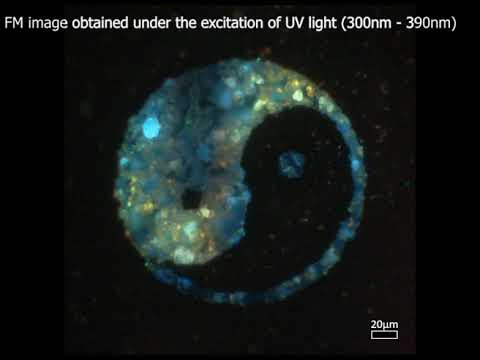 Compacted rCB powder was subjected to scanning focused laser spot annealing with the sample in ambient condition, or under controlled helium environment. After focused laser treatment with sample in ambient condition, the laser treated site was seen to have a blue appearance under bright field optical imaging and emitted blue, yellow and red color under specific color illumination.